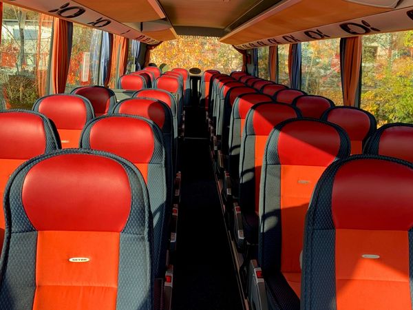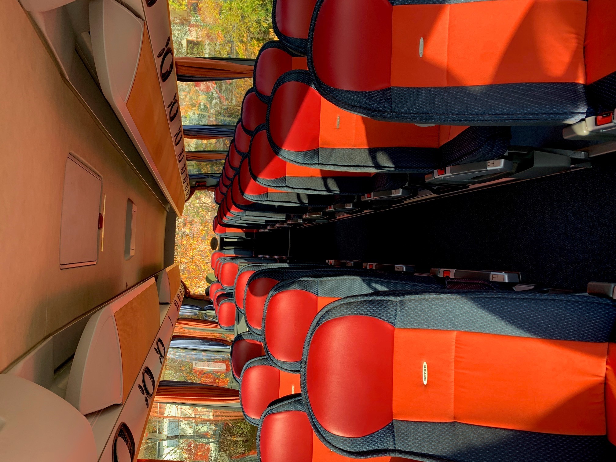 Toilette, Klimaanlage, Reisebestuhlung, Fußraster, Küche/Kaffeebar, CD-Radioanlage, DVD-Videoanlage, Navigationsanlage