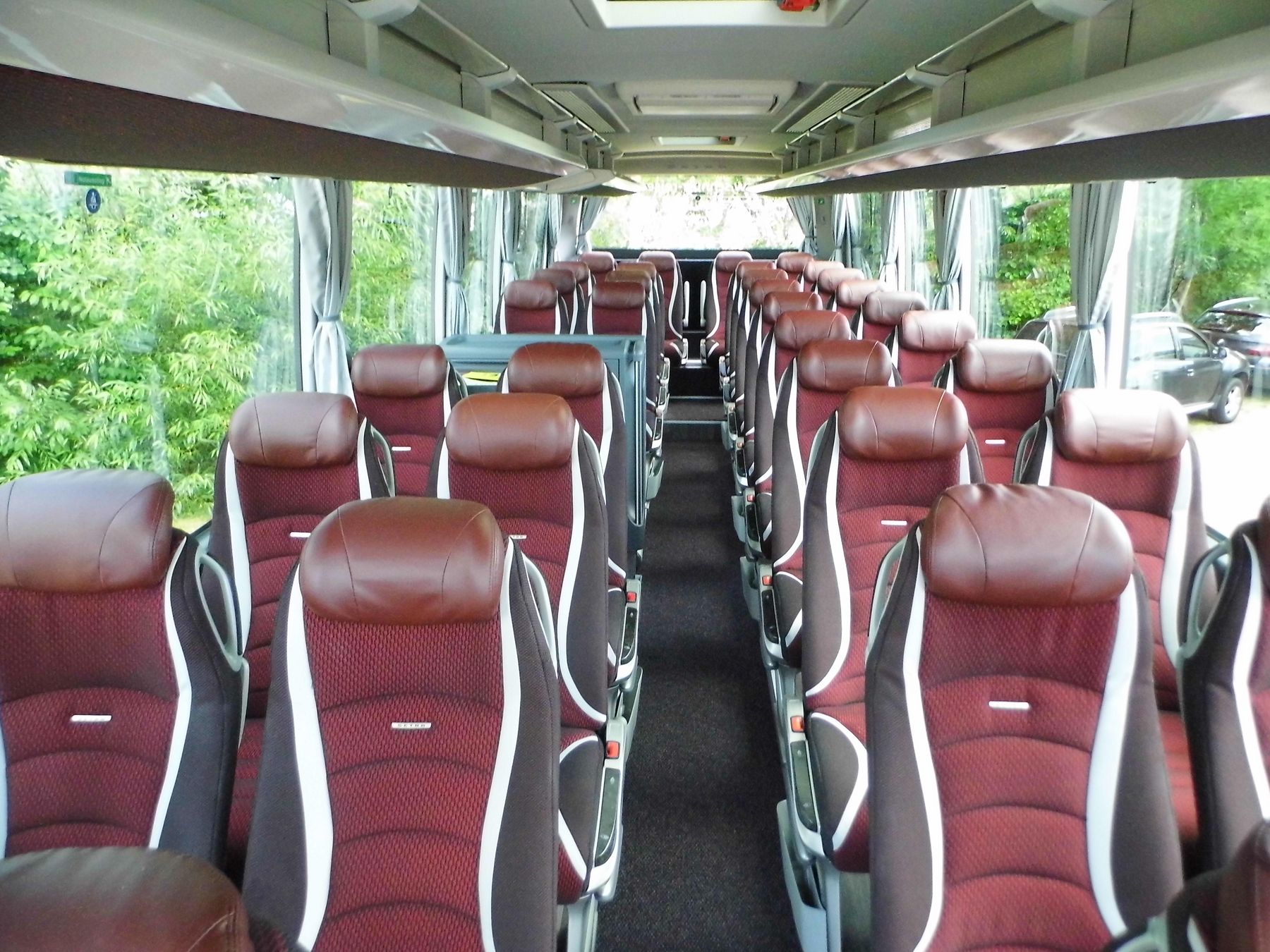 Toilette, Klimaanlage, Reisebestuhlung, Fußraster, Küche/Kaffeebar, CD-Radioanlage, DVD-Videoanlage, Flachbildschirme, Navigation, WLAN